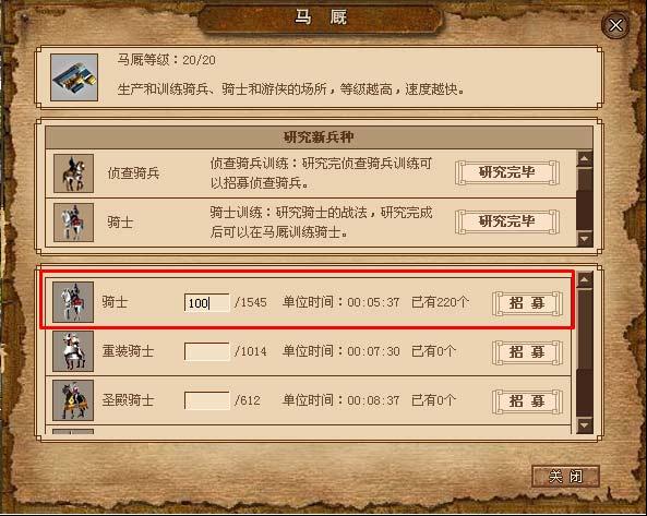 在《帝国重生》中兵种在研究完对应的科技后就可以生产了,在对应的兵营内,输入要生产的数量后点击后面的招募按钮后开始招募,一个兵营可以同时只能招募一种兵。如下图2所示的兵种在开始招募后可以对其进行“加速”,“取消”的操作,剩余时间显示的是:兵种生产完剩余的时间。在剩余时间到0时,玩家将得到他所生产的兵。